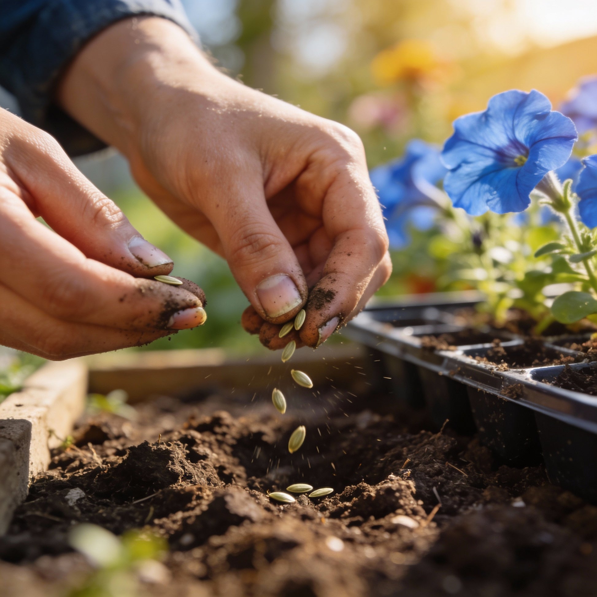 Standard petunia seeds (surface-sown, light-germinated).